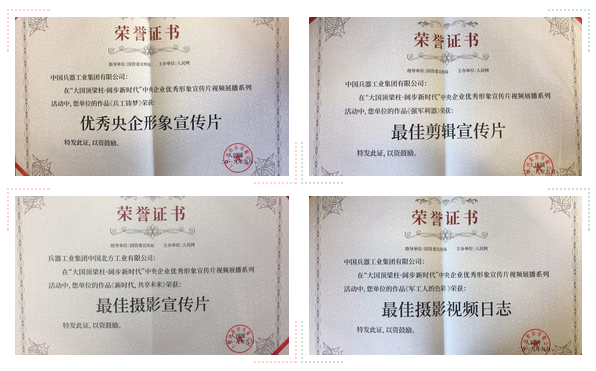 本次展播活動(dòng)分設(shè)形象宣傳片、員工視頻日志兩個(gè)賽道,從中央企業(yè)報(bào)送的2600余部作品中,評選出了“優(yōu)秀央企形象宣傳片”、“最具大國精神宣傳片”和“央企員工優(yōu)秀視頻日志”等十二個(gè)種類、120部優(yōu)秀作品,中國兵器工業(yè)集團(tuán)4部作品獲獎(jiǎng)。