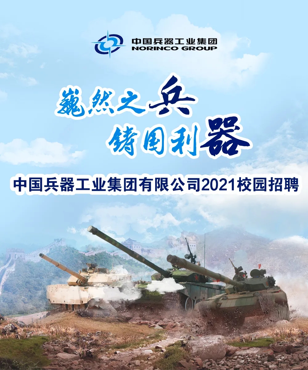 時間的軌道 承載著奮斗的汗水和腳印 十數(shù)年寒窗,半余生苦讀 即將告別象牙塔的你 是否已經準備好 在新的人生道路上揚帆起航 我們懂你的赤子之心 我們將伴你共同成長 感受中國兵器的魅力 來兵器工業(yè),攜夢想同行 中國兵器工業(yè)集團 2021春季校園招聘 正式啟動! 關于我們 中國兵器工業(yè)集團有限公司 ◆是我軍機械化、信息化、智能化裝備發(fā)展的骨干 ◆是全軍毀傷打擊的核心支撐 ◆是現(xiàn)代化新型陸軍體系作戰(zhàn)能力科研制造的主體 ◆是國家“一帶一路”建設和軍民融合發(fā)展的主力 中國兵器工業(yè)集團現(xiàn)有50余家子集團和直管單位,分布在北京、陜西、內蒙古等29個省、市、自治區(qū),在全球70余個國家和地區(qū)設立了100余家境外分子公司和代表處。集團公司連續(xù)16個年度和5個任期蟬聯(lián)國務院國資委業(yè)績考核A級,位列世界500強企業(yè)排名第154位。 揮別校園 人生的挑戰(zhàn)才剛剛開始 為你的未來 選擇一個廣闊的舞臺 加入兵器工業(yè),追尋人生理想 揮灑青春激情,共鑄強大國防 履行強軍首責,推動高質量發(fā)展 中國兵器工業(yè)集團 期待志同道合的你 |