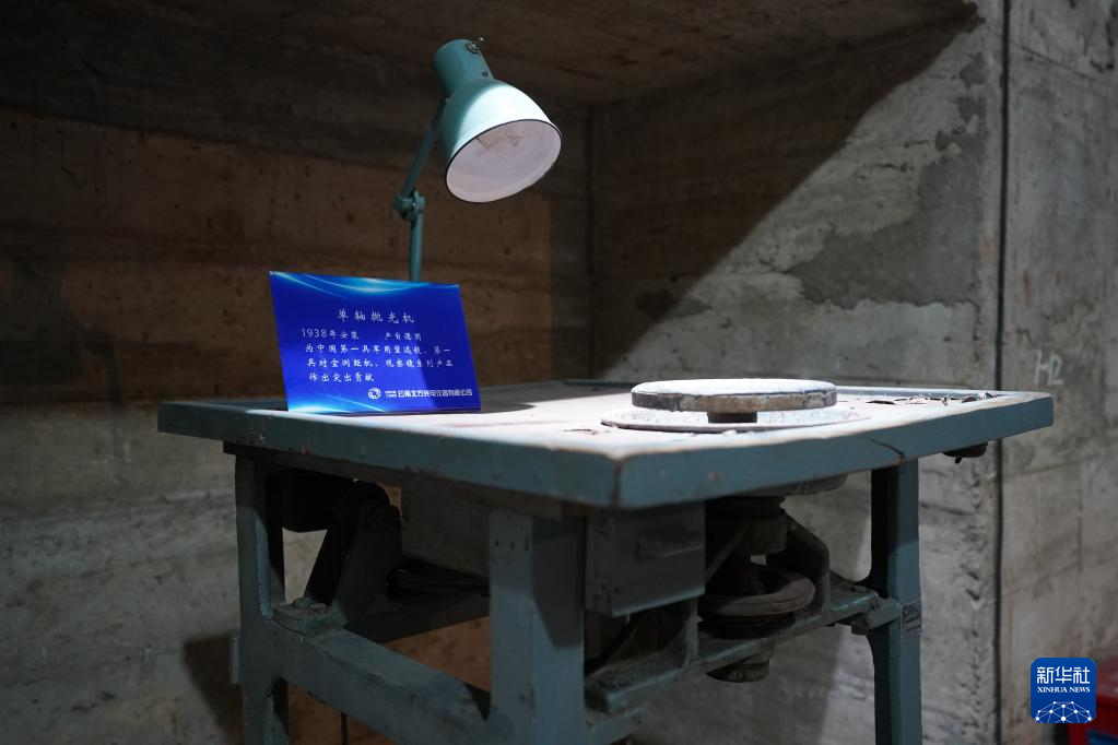 這是5月16日拍攝的中國光學(xué)歷史博物館內(nèi)收藏的一臺(tái)單軸拋光機(jī)。