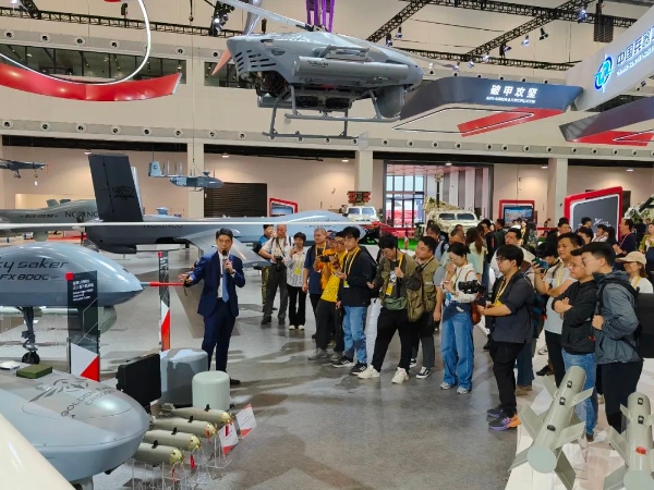 本屆航展,兵器工業(yè)集團(tuán)著重展示數(shù)智賦能軍貿(mào)合成旅作戰(zhàn)體系?!疤金^”現(xiàn)場,新聞發(fā)言人向記者團(tuán)介紹了本屆航展集團(tuán)公司參展亮點(diǎn)、明星產(chǎn)品和技術(shù)發(fā)展成果,并對VT5-U輕型坦克、VU-T10無人平臺、SR5多管火箭炮、金雕CR500B無人直升機(jī)系統(tǒng)、指揮控制中心等參展裝備和技術(shù)作了重點(diǎn)介紹,媒體記者進(jìn)一步了解了裝備的性能和特點(diǎn)。在無人火力展區(qū),記者團(tuán)還走進(jìn)仿真訓(xùn)練體驗(yàn)區(qū),親身“使用”單兵武器,體驗(yàn)裝備性能。