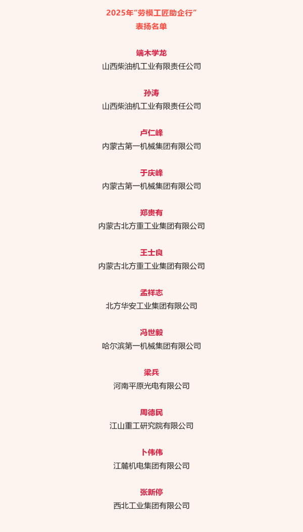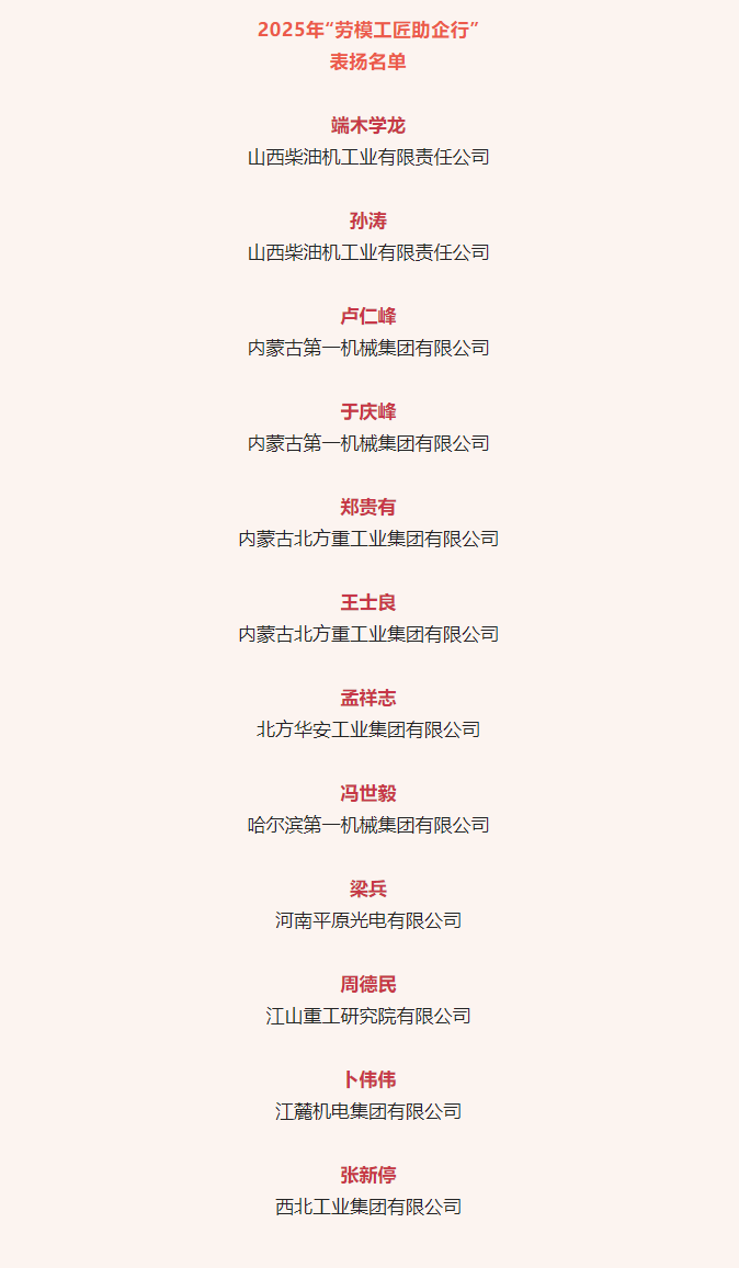兵器工業(yè)集團12名勞模工匠入選“勞模工匠助企行”表揚名單 |